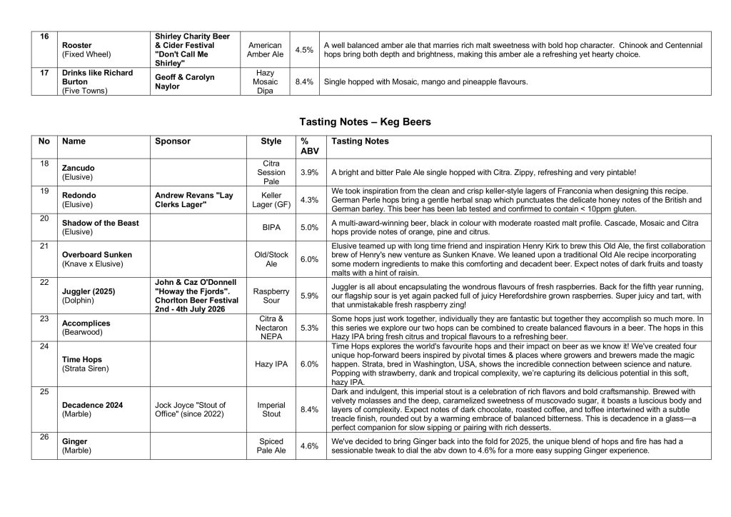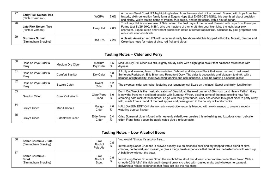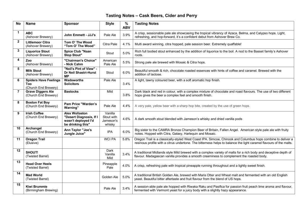 We’re delighted to announce this year’s full beer and cider list – see below for tasting notes.